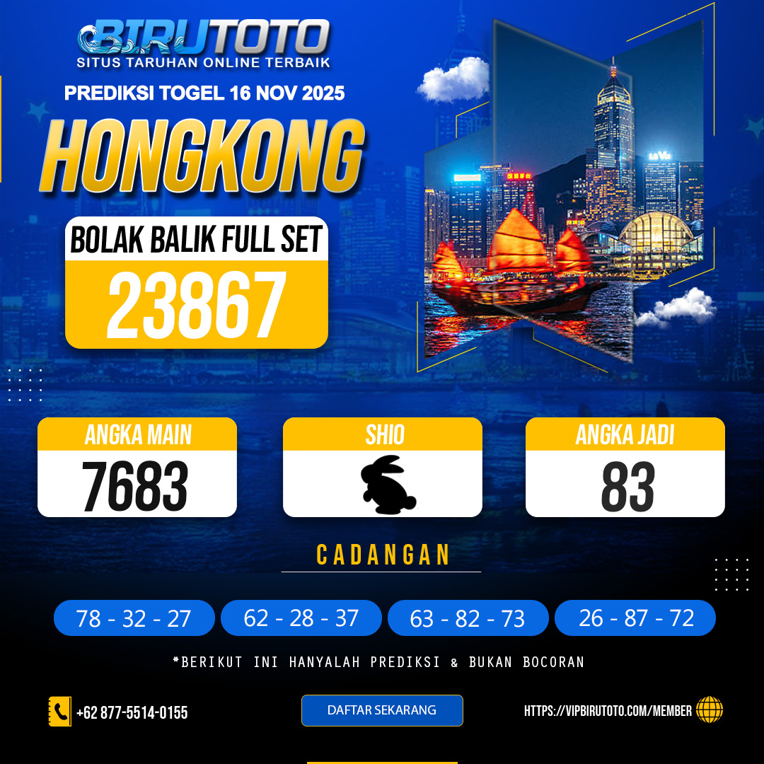 Prediksi togel Hongkong jitu akurat dari kami tentu sudah kami tentukan dengan rumus variabel atau sistem matematika yang tentunya rumus tersebut akan sangat panjang jika di uraikan, maka dari itu disini kami langsung mengurainya menjadi sebuah prediksi togel jitu serta paling lengkap dan angka invest dan angka jitunya. Ayo daftar dan deposit sekarang juga untuk mendapatkan jackpot besar bersama birutoto !