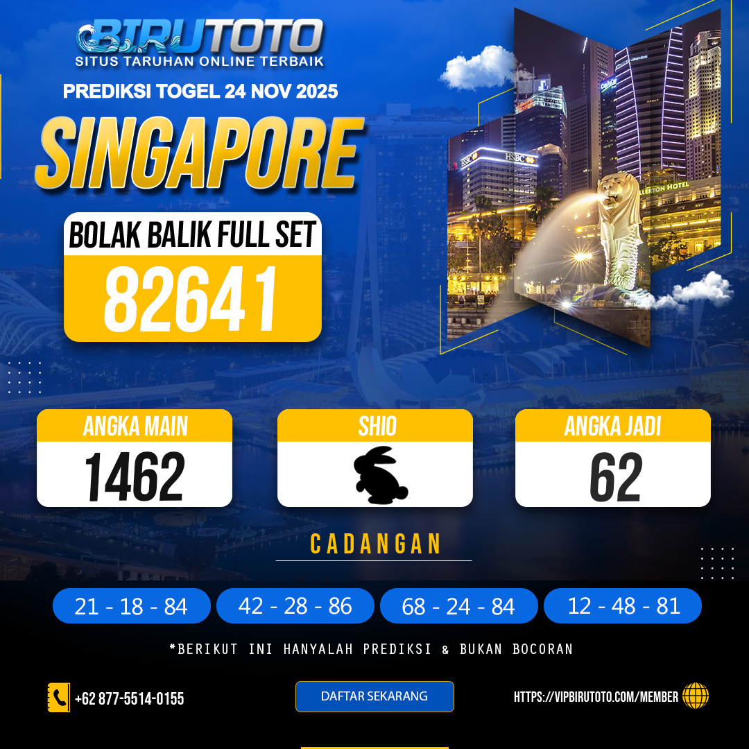 Prediksi togel Singapore jitu akurat dari kami tentu sudah kami tentukan dengan rumus variabel atau sistem matematika yang tentunya rumus tersebut akan sangat panjang jika di uraikan, maka dari itu disini kami langsung mengurainya menjadi sebuah prediksi togel jitu serta paling lengkap dan angka invest dan angka jitunya. Ayo daftar dan deposit sekarang juga untuk mendapatkan jackpot besar bersama birutoto !