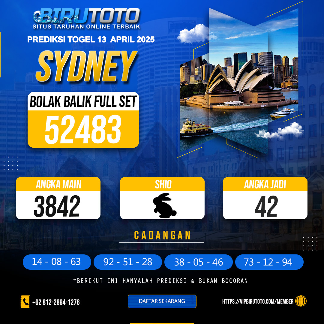 Prediksi togel Sydney jitu akurat dari kami tentu sudah kami tentukan dengan rumus variabel atau sistem matematika yang tentunya rumus tersebut akan sangat panjang jika di uraikan, maka dari itu disini kami langsung mengurainya menjadi sebuah prediksi togel jitu serta paling lengkap dan angka invest dan angka jitunya. Ayo daftar dan deposit sekarang juga untuk mendapatkan jackpot besar bersama birutoto !