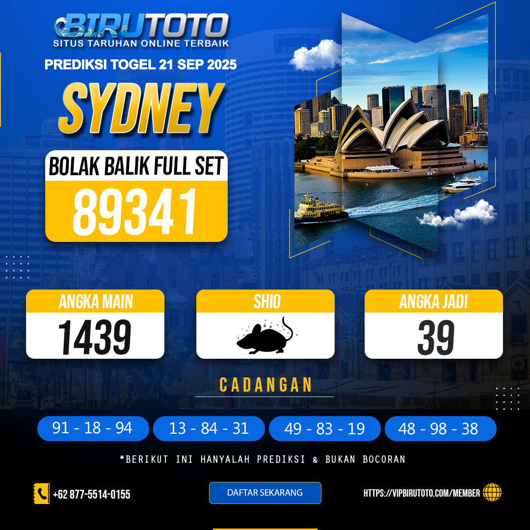 Prediksi Togel Sydney Minggu 21 September 2025 Jitu Akurat