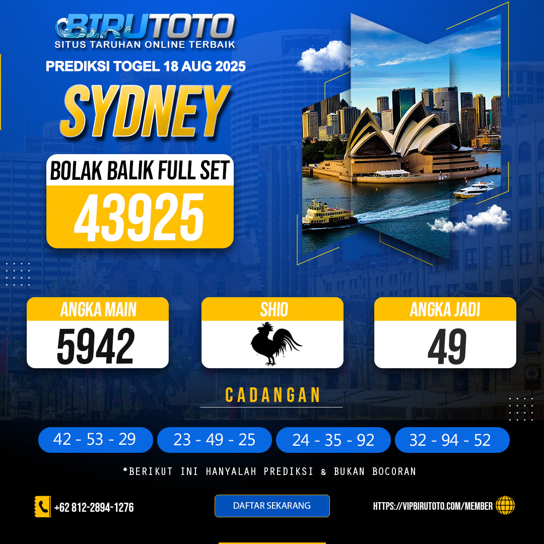 Prediksi Togel Sydney Senin 18 Agustus 2025 Jitu Akurat